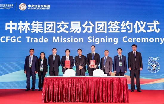 11月5日至10日,第五届中国国际进口博览会在上海中国国家会展中心举办,林产工业公司作为中林集团交易分团成员参加进博会并进行现场签约,签约总金额达1.8亿美元。